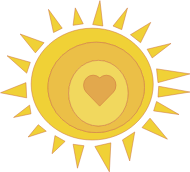 A very bright sun with a heart in the center.