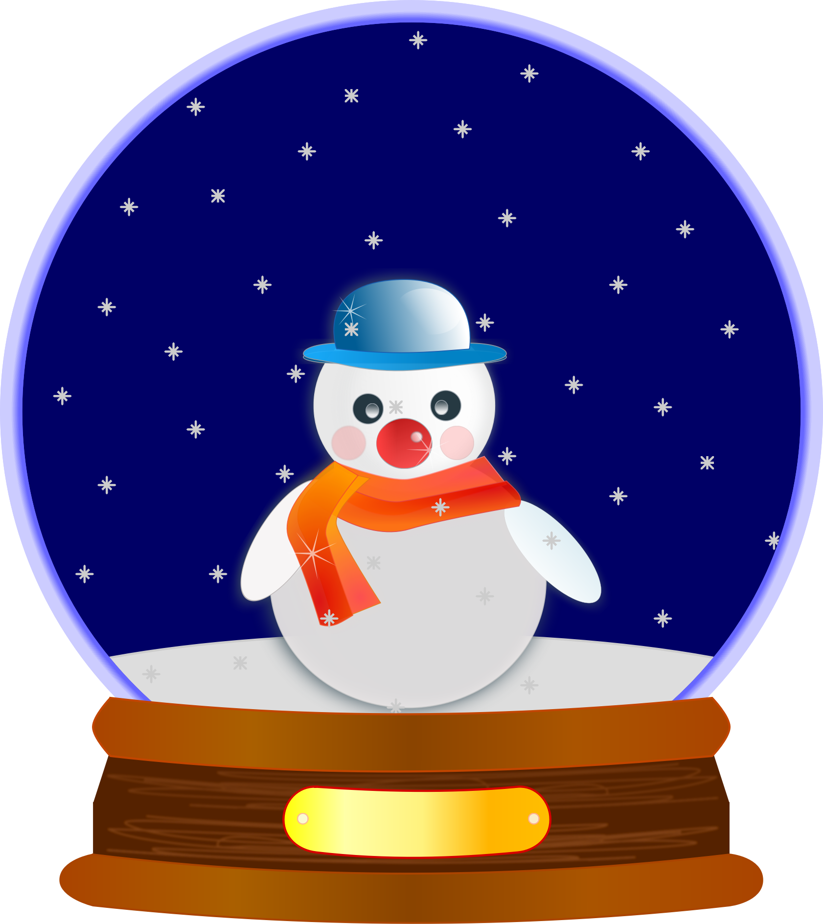 Animated snow in a holiday snow globe containing openclipart's Snowman glossy and base from snow globe. SVG code can be inserted into an SVG image then scaled and positioned where desired. svg animated snow works in browsers that support animation