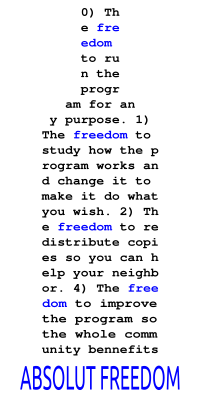 A freedom statement written a bottle-shape.