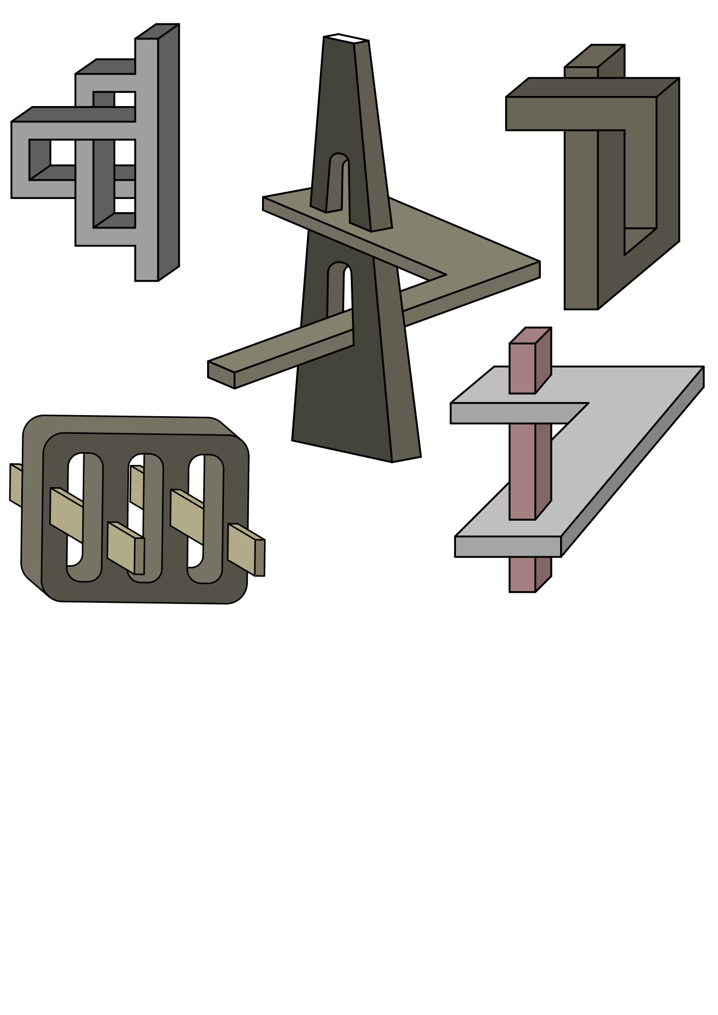 This is a collection of 5 impossible objects drawn in a 2D CAD program and transformed into vector art format.