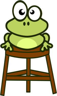 A funny green frog sitting on a bar stool. Not a toad.