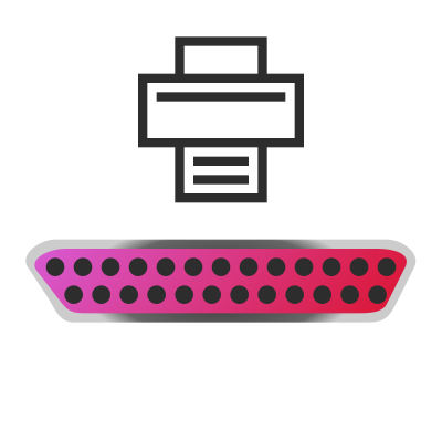 A parallel port with a drawing of a printer above it.