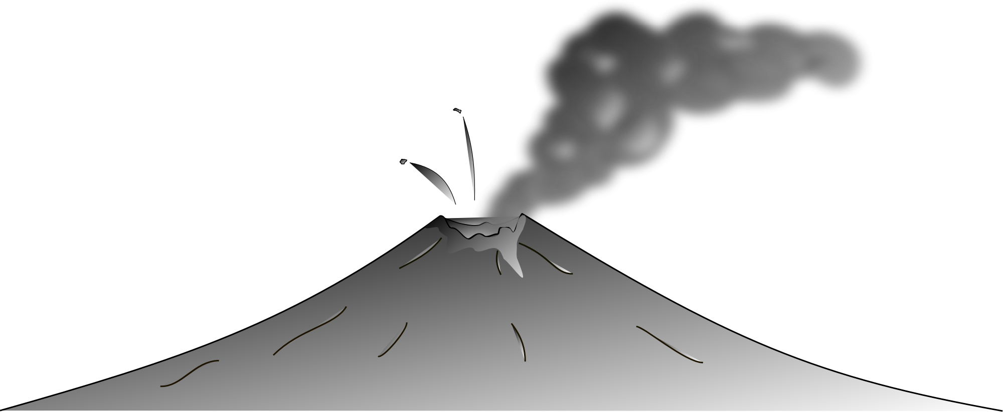 A greyish smoking cartoon volcano with some projectiles