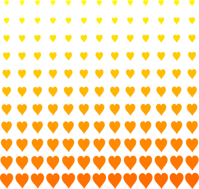 Grid of heart symbols with increasing size, top to bottom