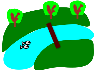 - between field fish green intersyllabic v rimanalogi river stream stuffilike tree trees