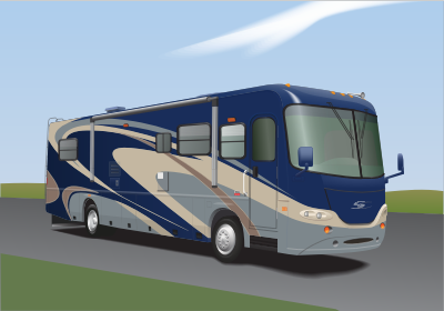 A rendering of the 2005 Coachmen Cross Country motorhome, a diesel pusher.