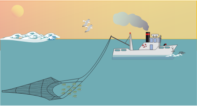 A fishing boat at sea.