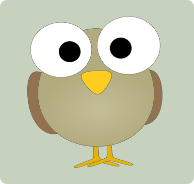 A funny-looking soft-grey cartoon bird with big eyes.
