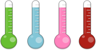 Four shiny thermometers.