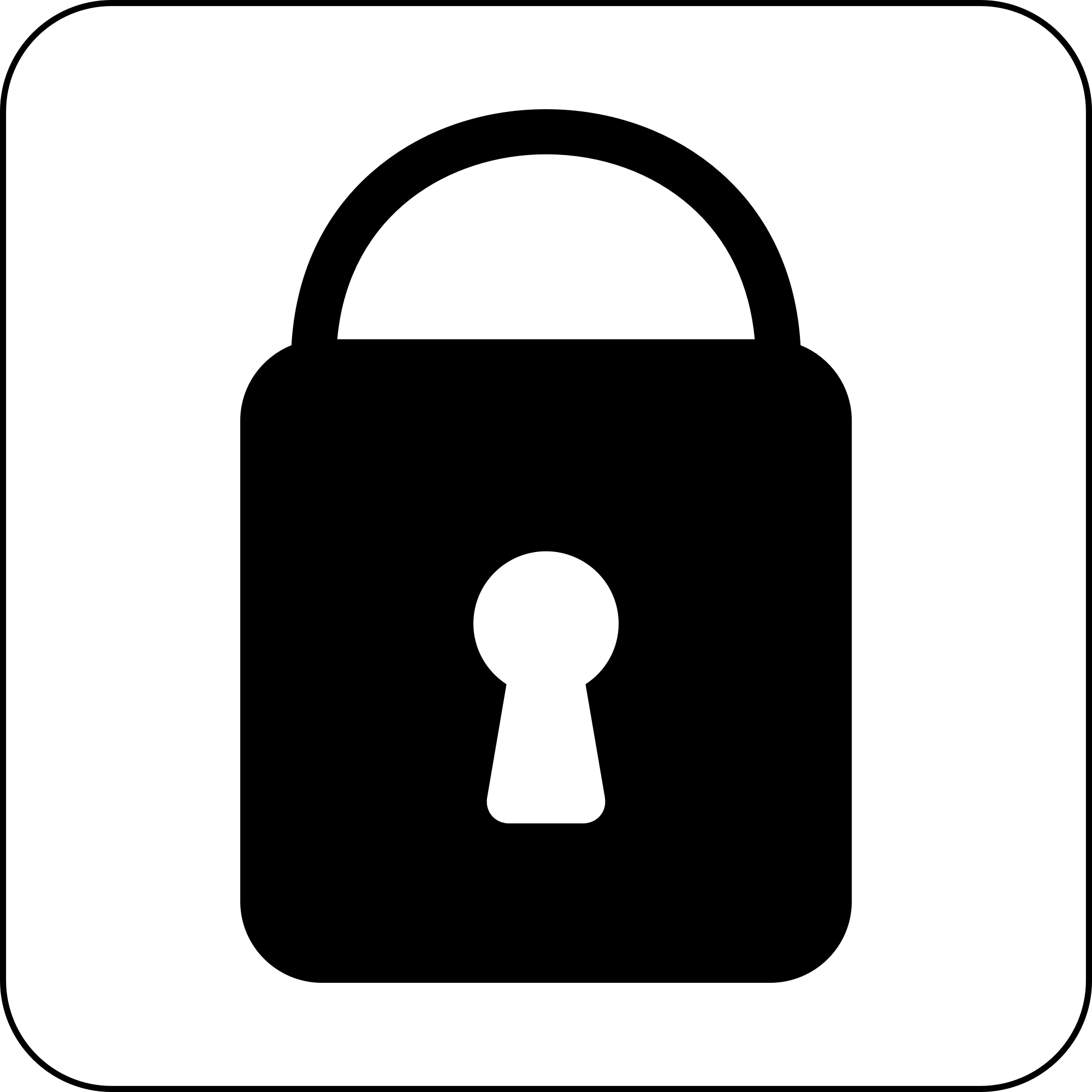 Simple black and white Lock icon. With a round edged box with white fill to create contrast. This icon can be seen in front of any image or backdrop because of it's design.