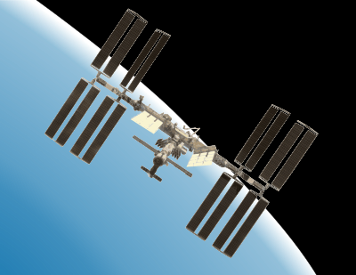 The International Space Station with a gradient background suggesting Earth.