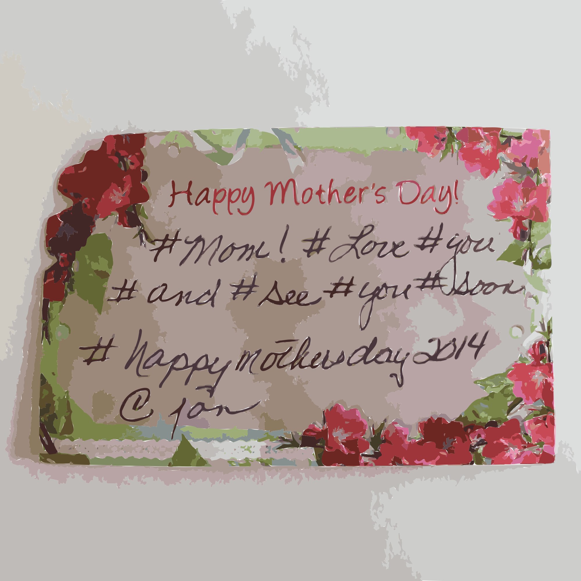 I had to send my mom flowers from a distance and the flower worker hand wrote my hashtags for me haha. 2014
