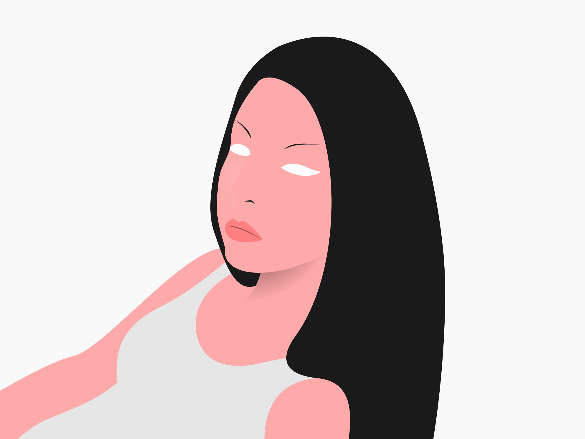 A flat image of an asian woman's face and top torso.