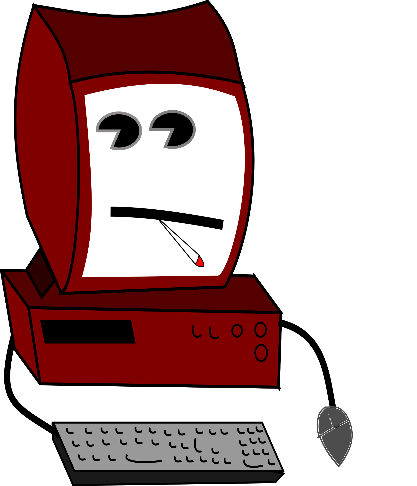 Irene_Ve uploaded this amazing cartoon of a sad computer smoking. The document file size was messed up and it was lacking tags, so it languished in silence. No more, I tell you! I will let this sad computer into the light of day, maybe someone can love it!