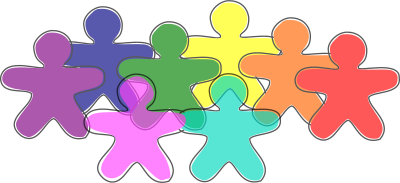 70% opaque rainbow of gingerbread people representing spirits prior to birth in the Garden of Eden
