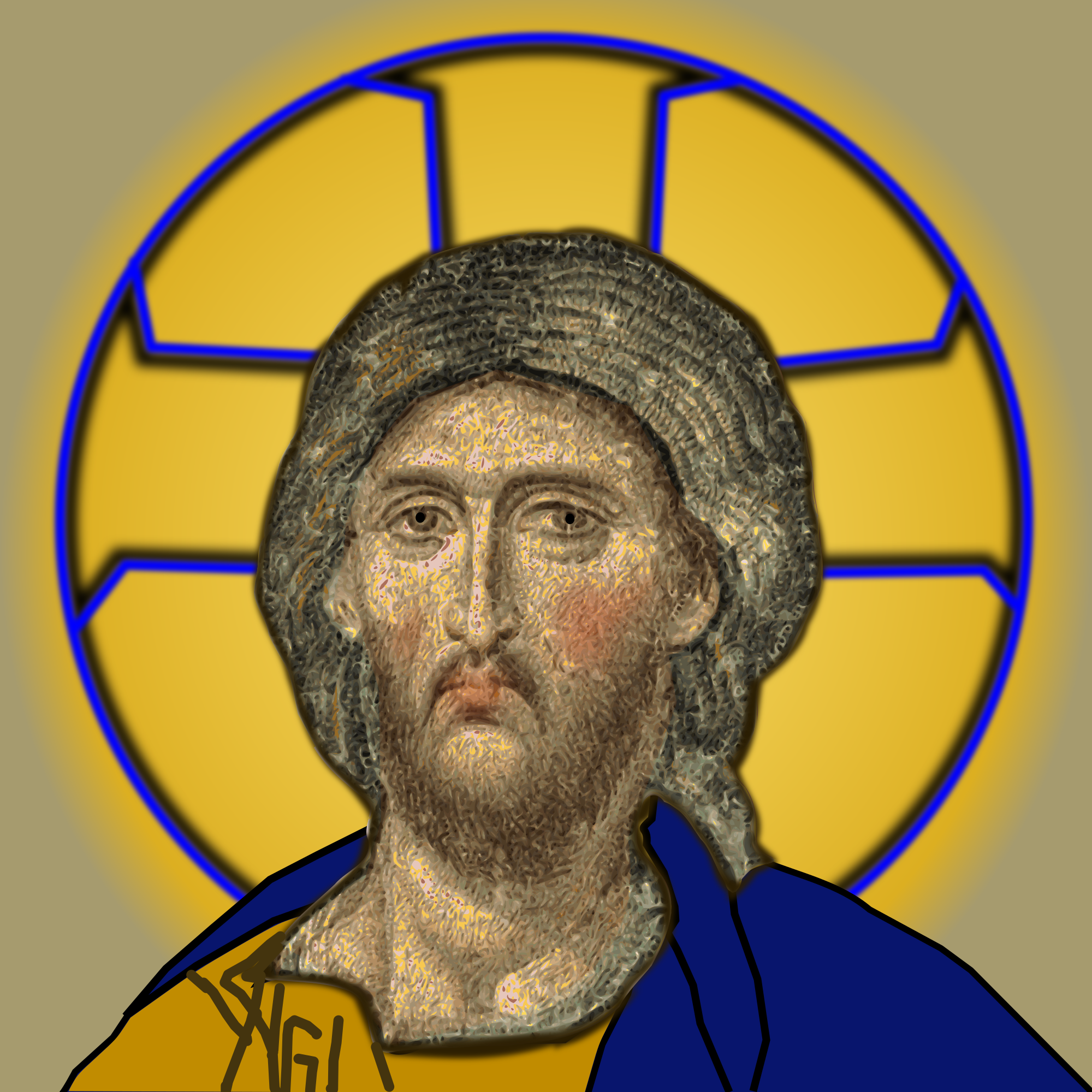 Filled requested clip art to cleaning up Hagia Sophia Christ mosaic. I fixed the distorted perspective of the original and completed the cropped off halo. The flesh is auto-scanned, the rest is hand drawn.