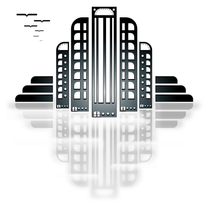 A stylized cityscape.
