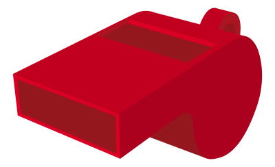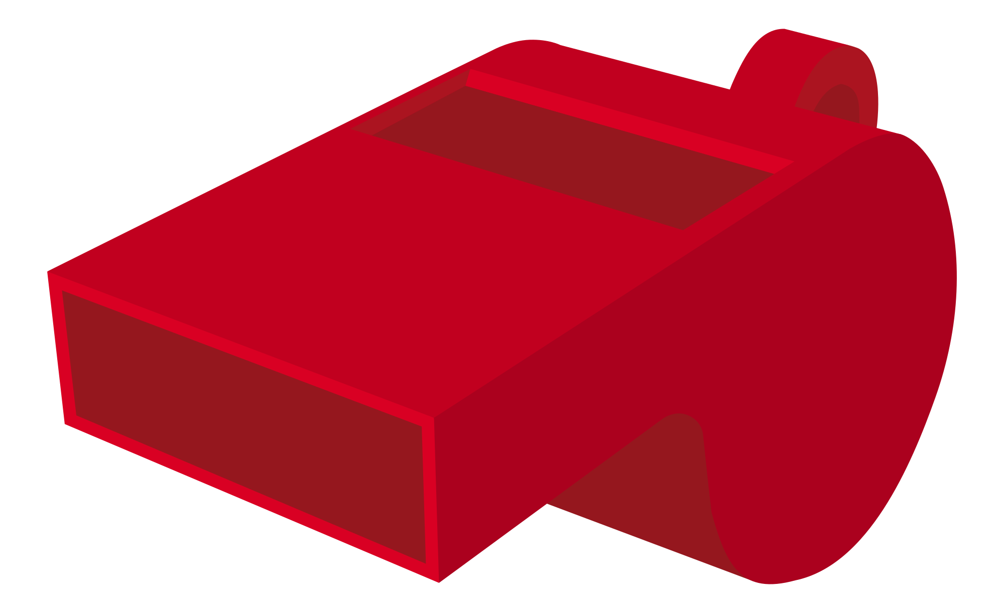 A red plastic whistle. (rounded corners)