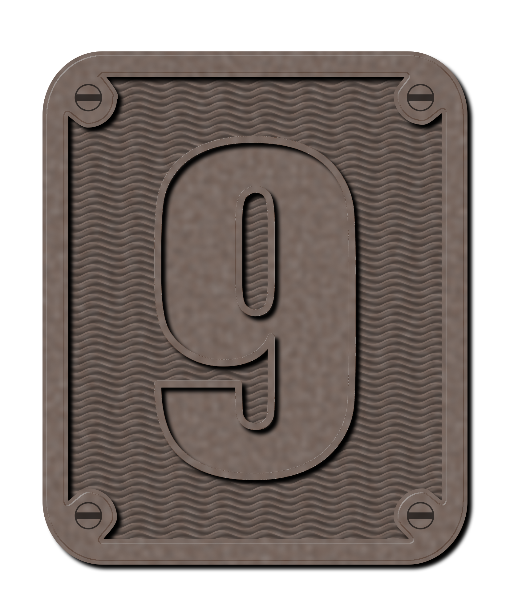 An industrial-looking metal number 9 on a background.