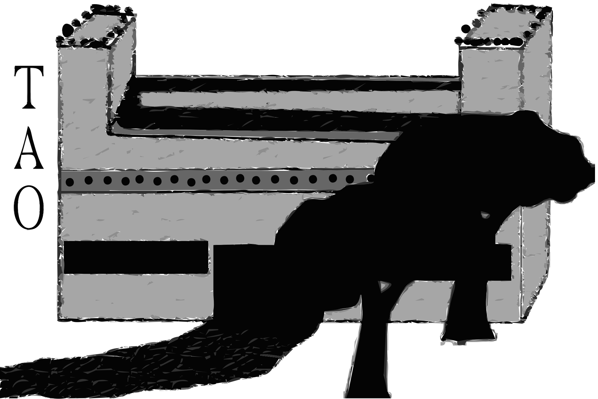 Buddhist Monastery with two trees in the foreground and a way to the entrance. On the top is a ground where the monks can make their exercises. The word TAO means way.