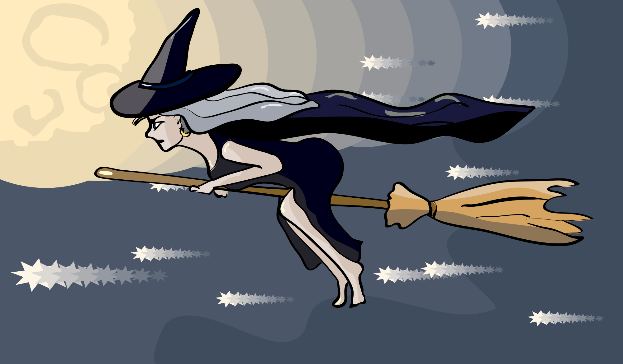 cartoon witch flying on a broom
