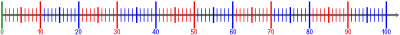 natural number line 100 with colored scale