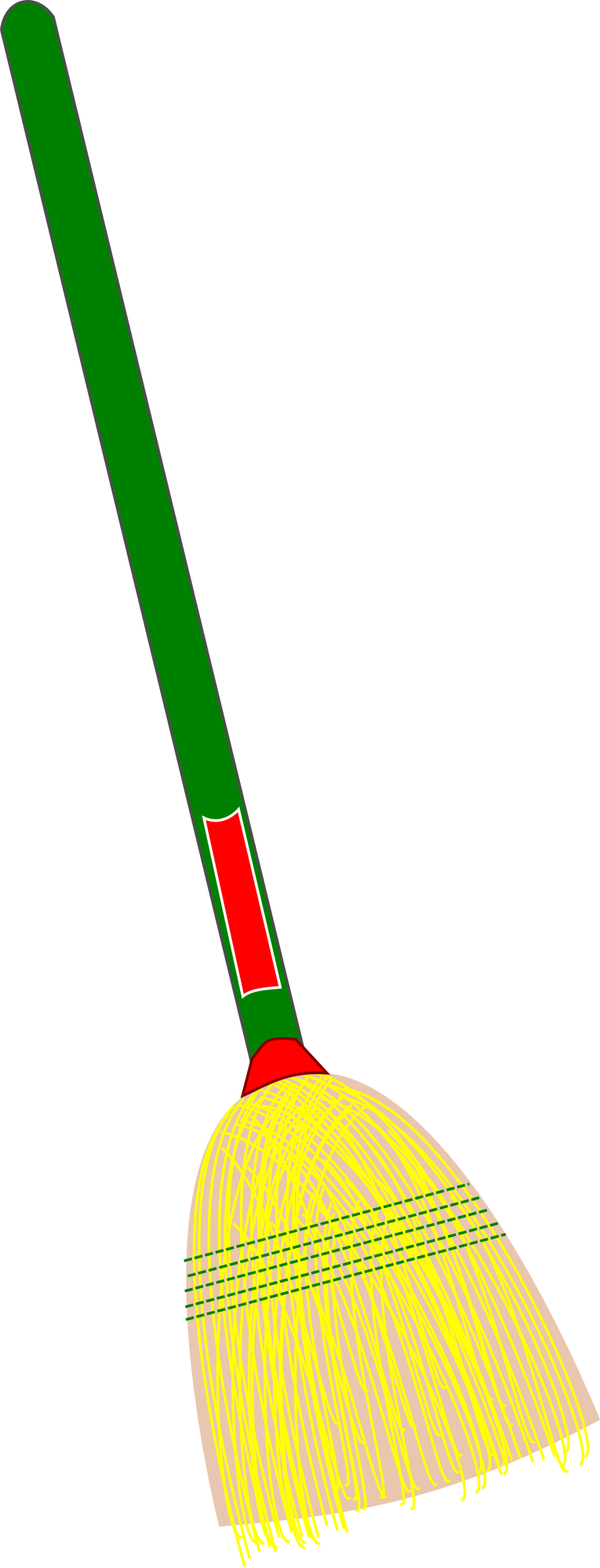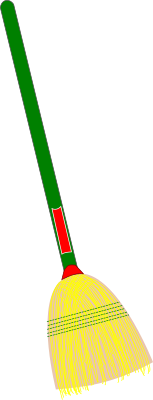 A broom with a green stick.