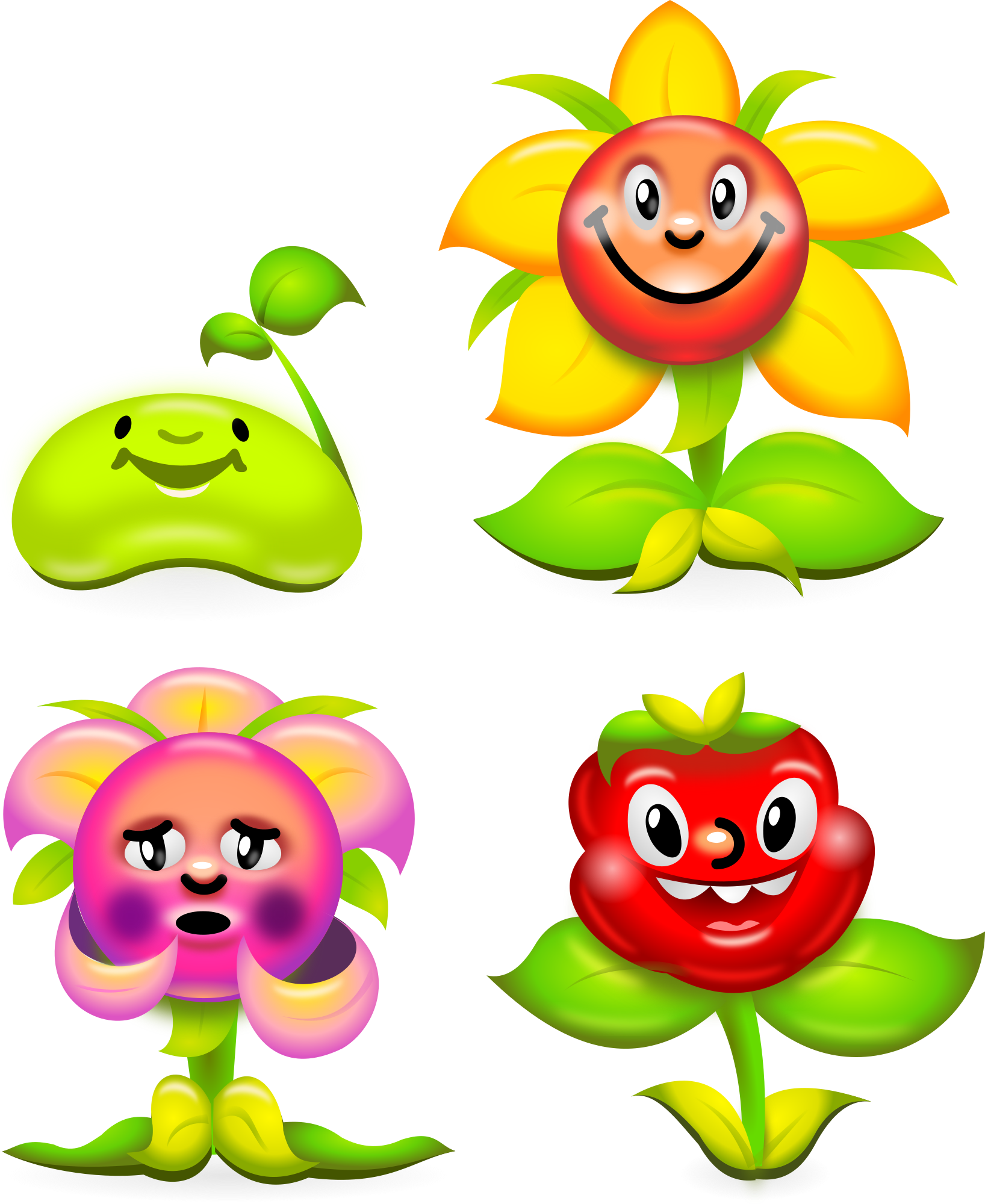 Flower Game Charaters, vector based, isolated, for easy extraction and composition, 100% inkscape compatible