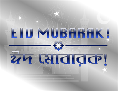 Eid Mubarak in English, and Bengali.