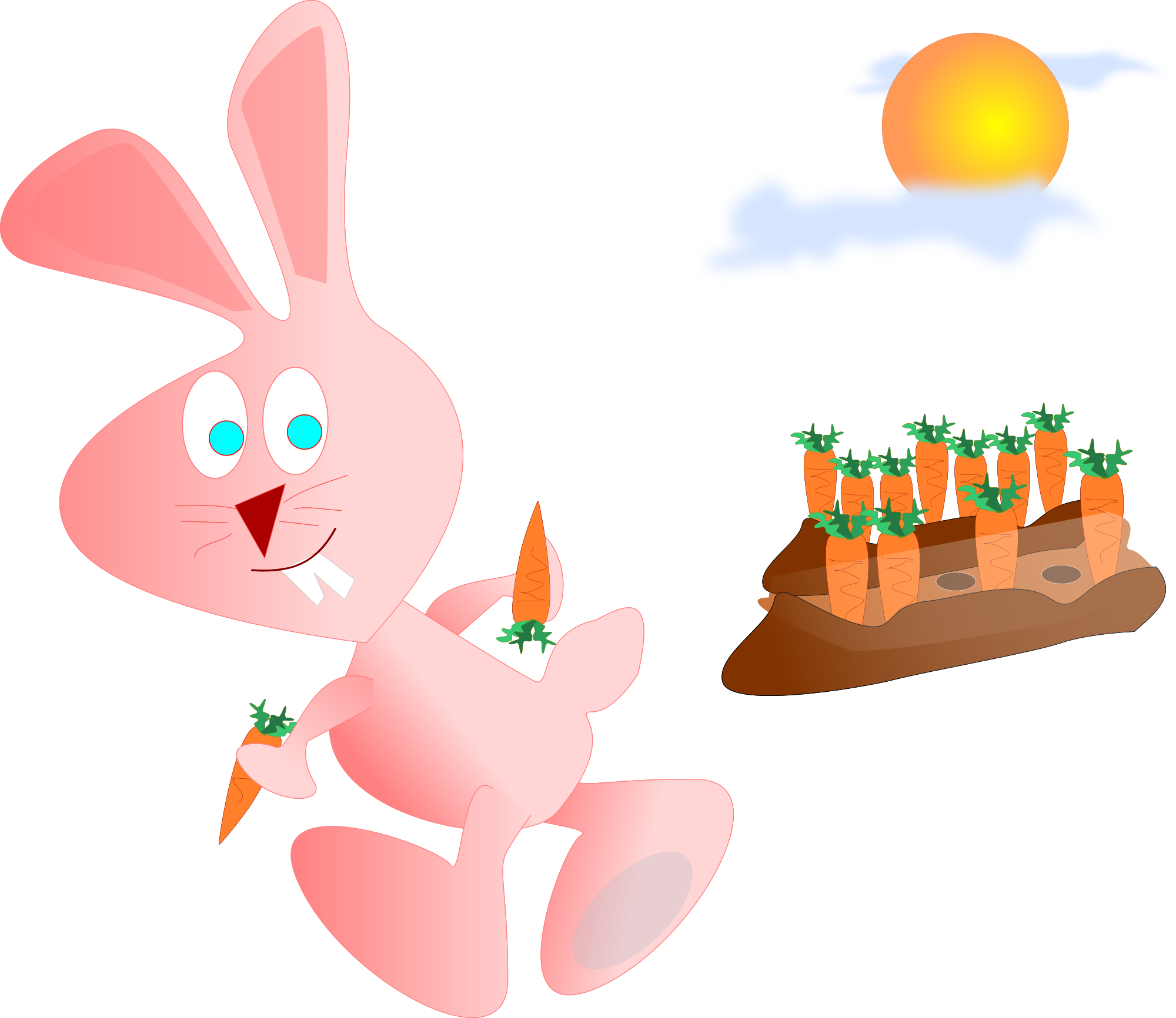 A pink bunny taking some carrots.