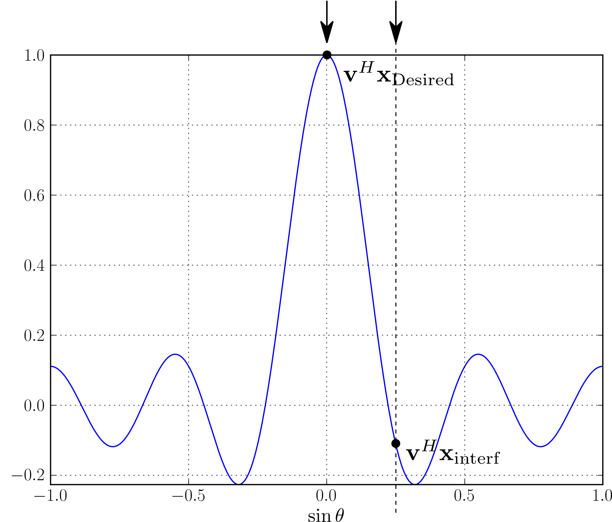 - Main beam recieving both desired and interference signals