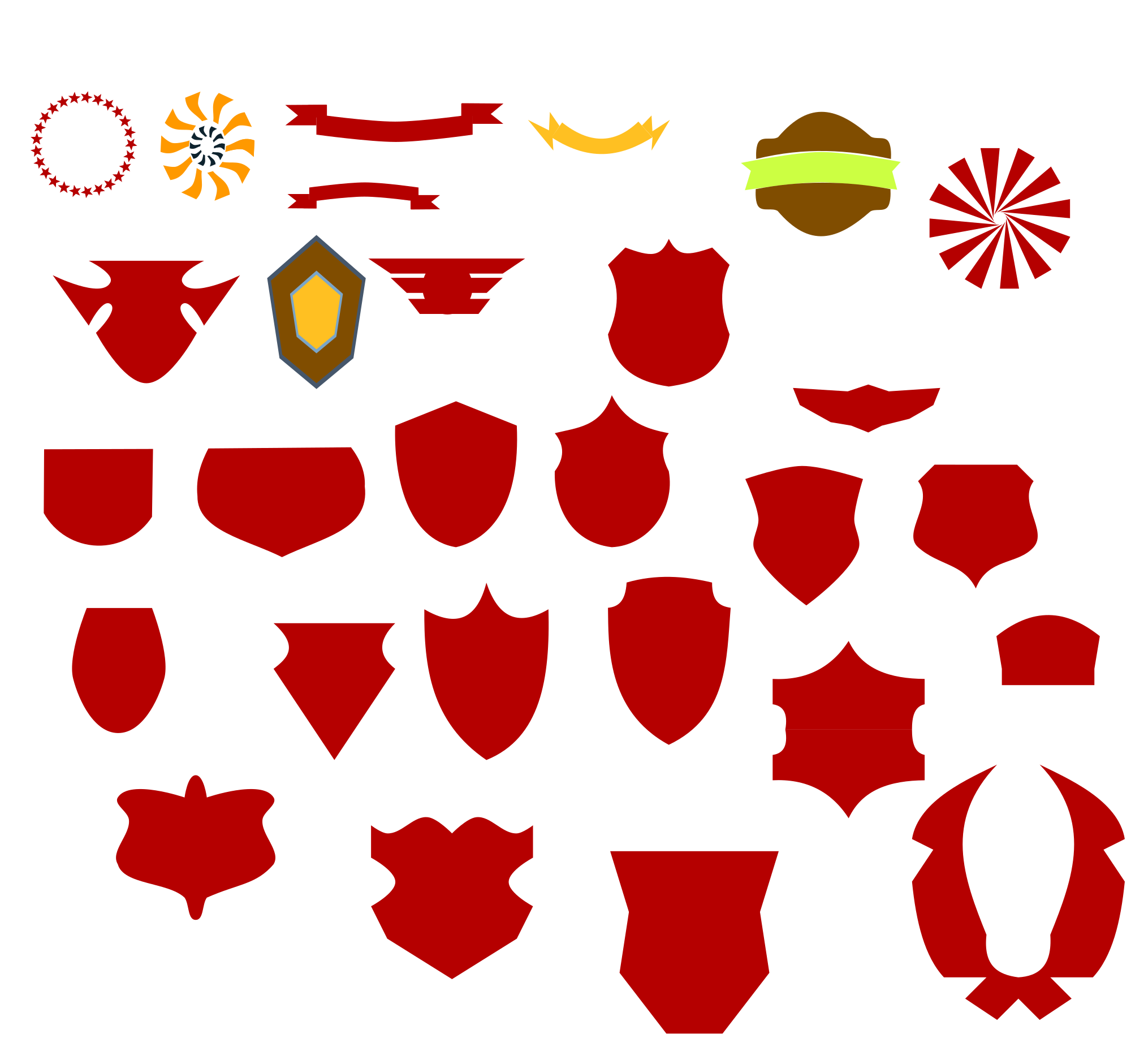 Random collection of non-specific emblems, logos, shields, and trophies.