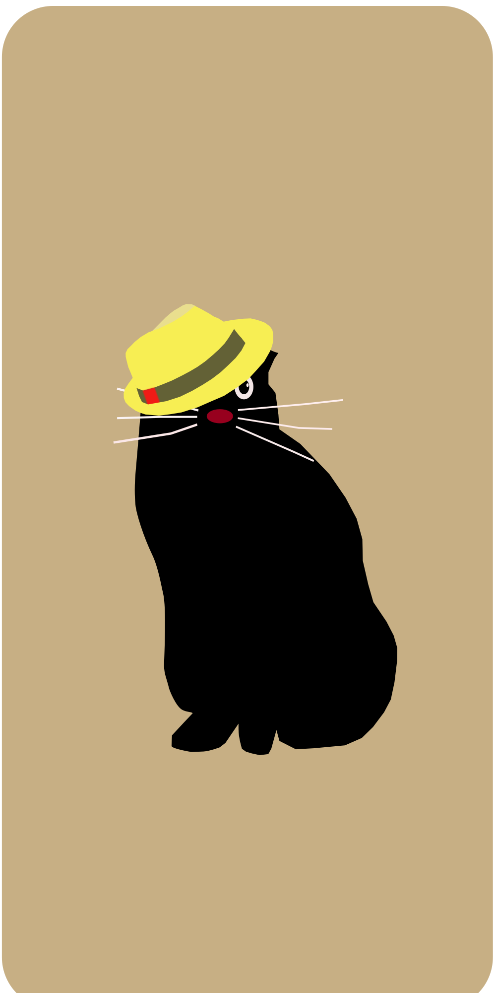 a sitting blackcat which wears hat on his head