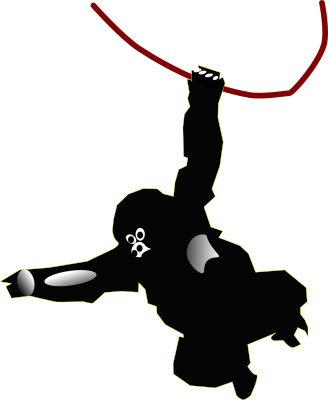 Simple mountain gorilla, whole body, made from few nodes, swinging on a liana.