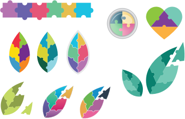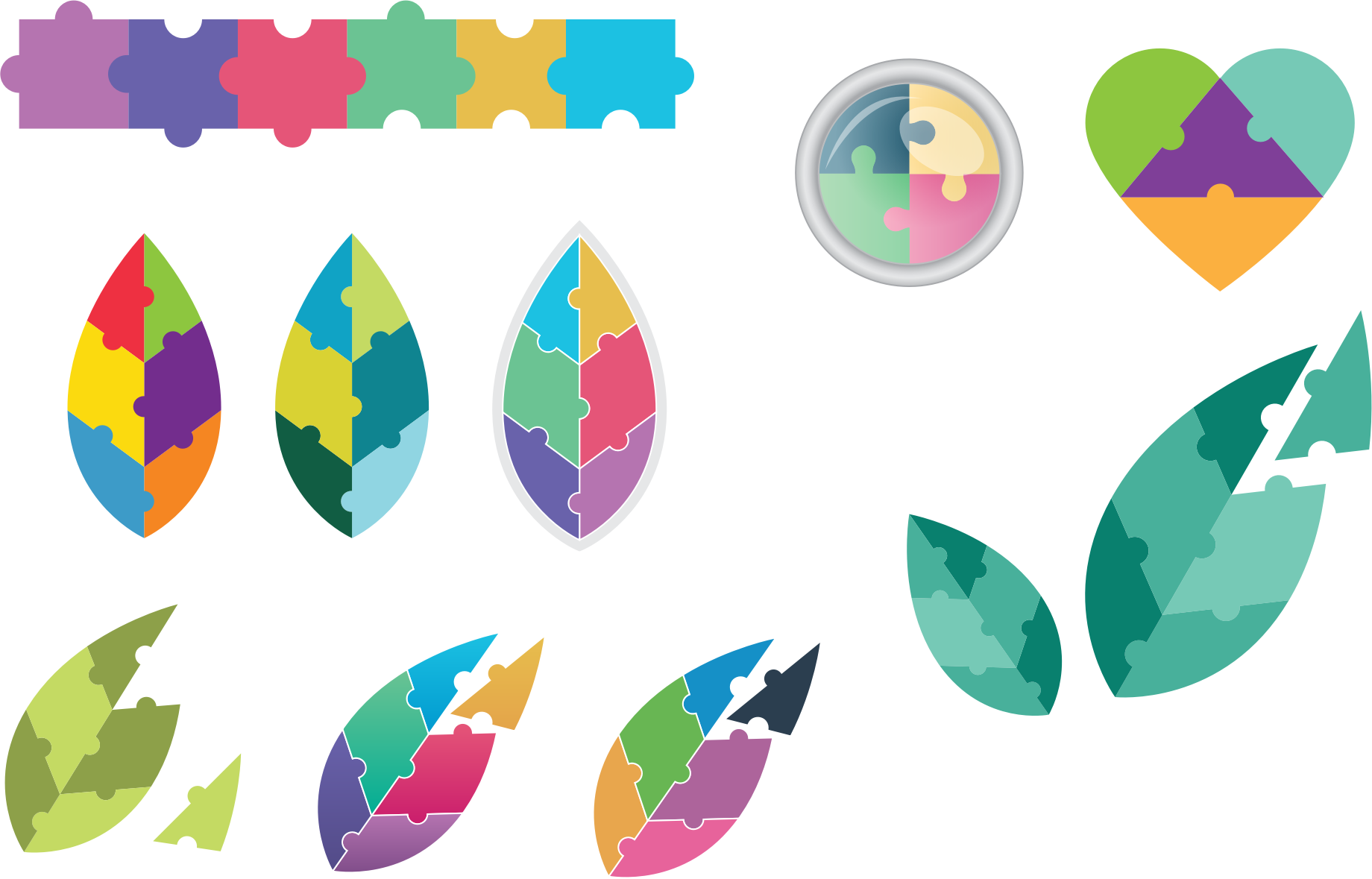 A few versions of leaves as puzzle pieces.