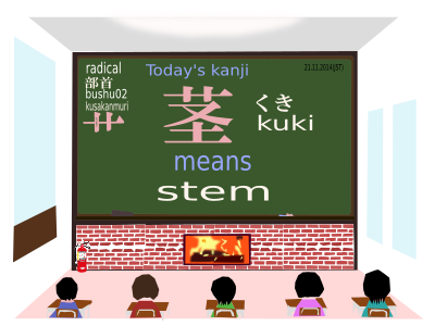 a kanji which is read as "kuki" and means "stem" includes a radical or bushu called "kusakanmuri".