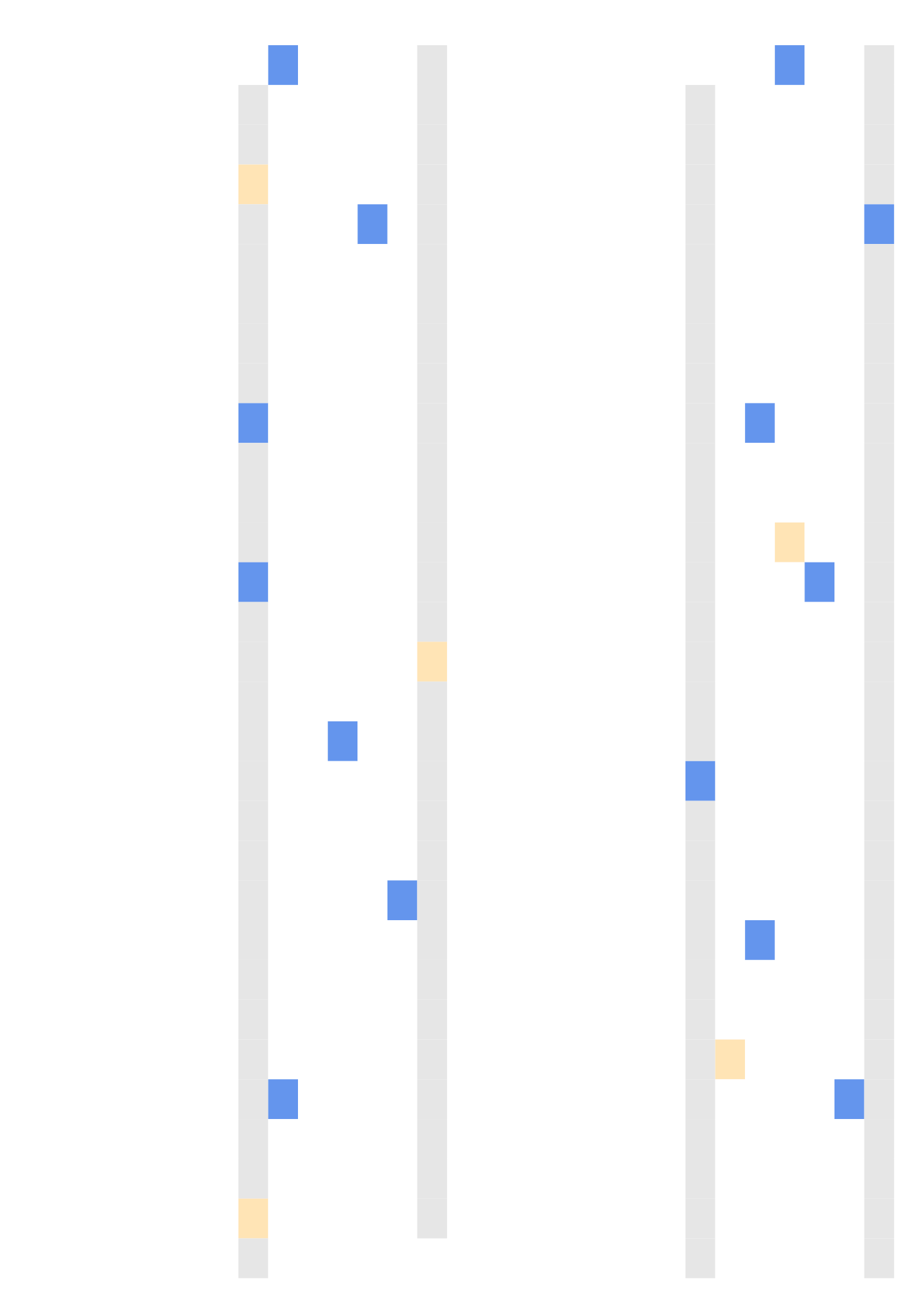 Template for the 2009 calendar including December 2008 and January 2010. Layout split in two columns: one colum per week day by one row per week, starting on Sunday.