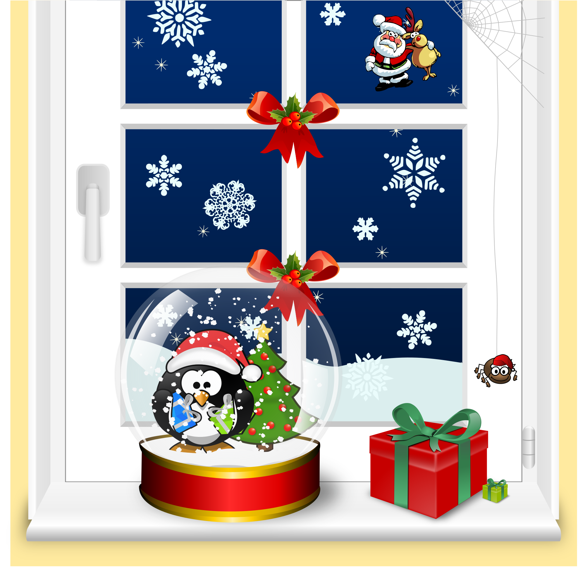 - bird Christmas decoration friends glass holidays penguin penguins present snow snow globe spider Tux window window view winter Xmas