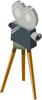 A cartoon movie camera on a tripod.