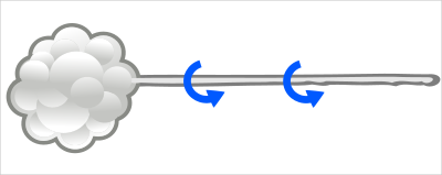 A cartoon picture of cotton (or wool) being stretched and spun to make thread.