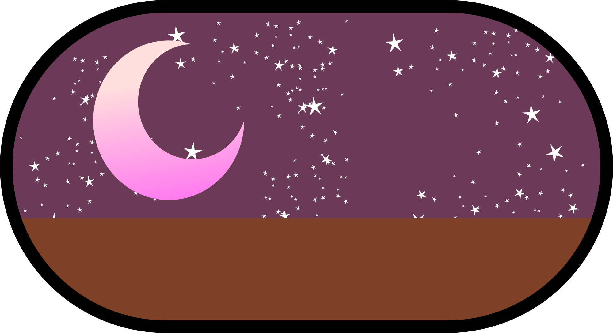 A symbol for night time featuring a moon and stars and a dark night sky.