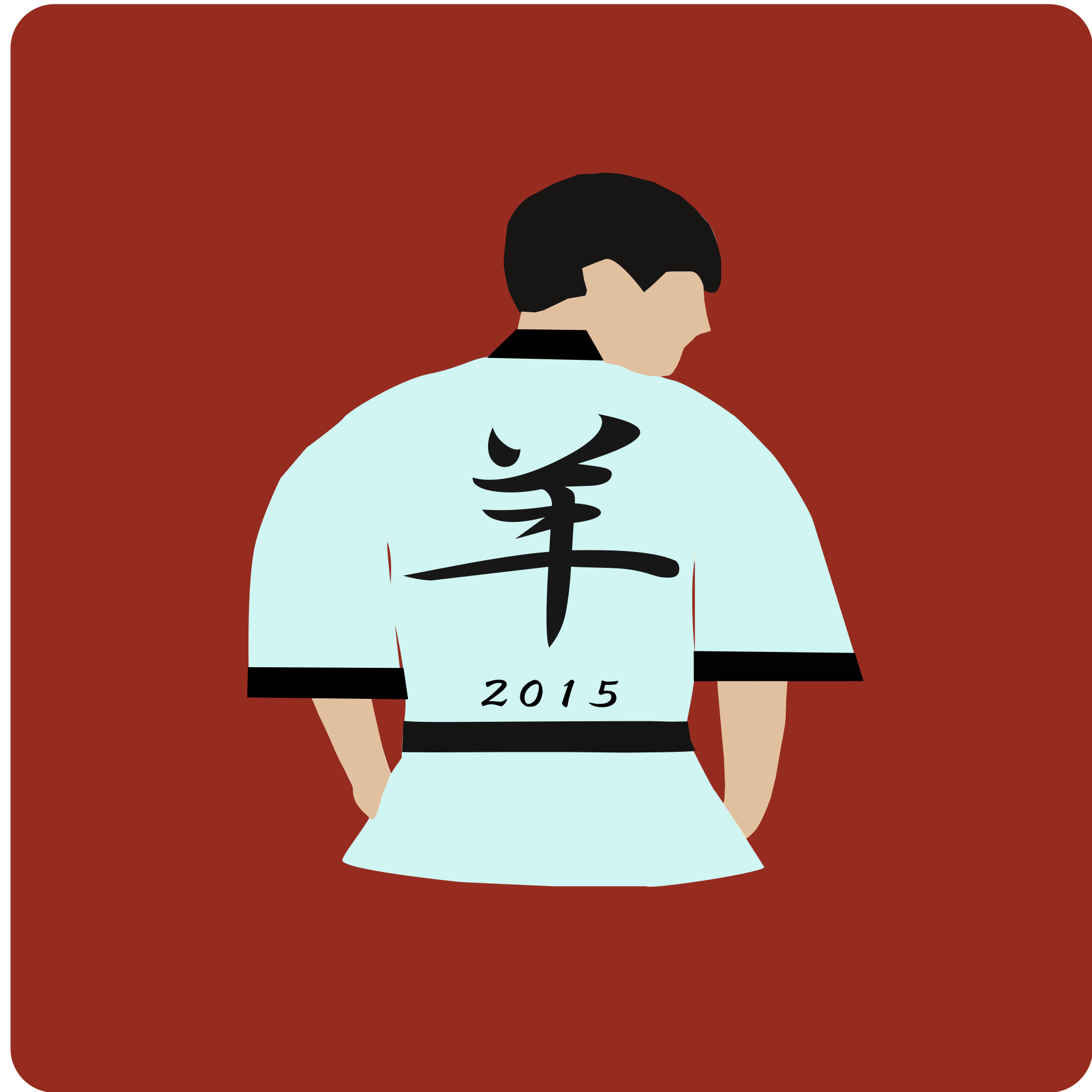 The kanji on his back is called "hitsuji or you" and means "sheep" in Japan.