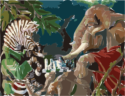 Seeking black and white or color clip art involving two players facing off at the chess board... could be kids, adults, or even animals. A simpler background is fine.
