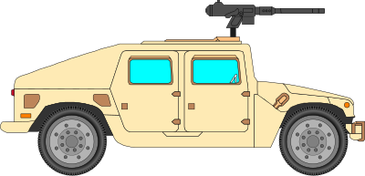 Light brown car with machine gun mounted on top.