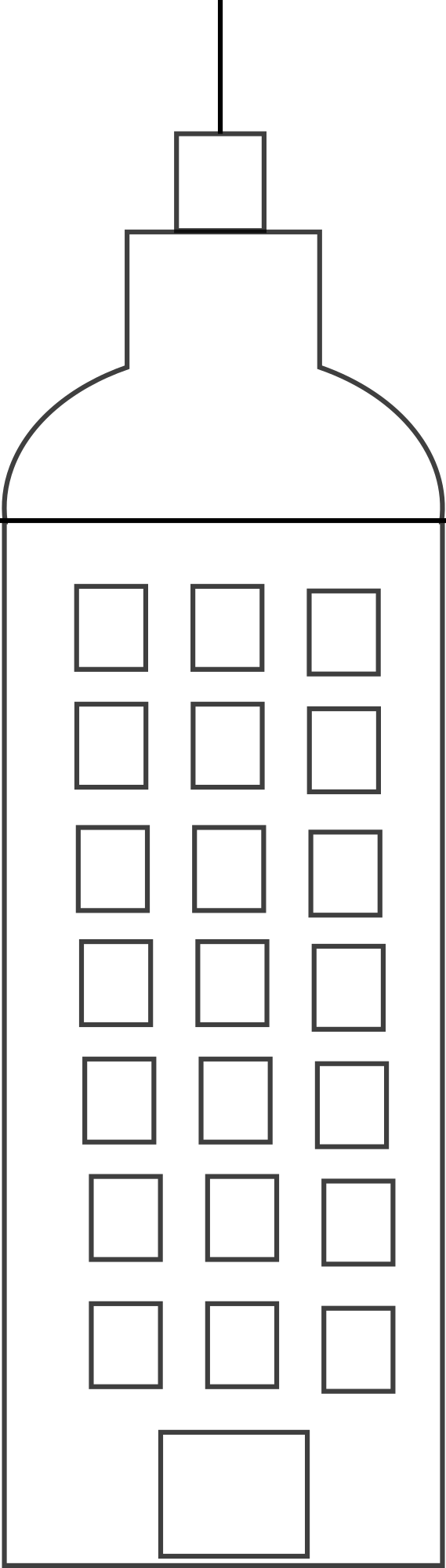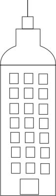 A black and white line art skyscraper.