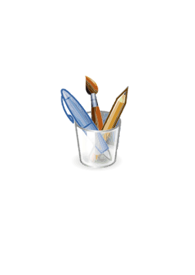 Just a glass with a brush, pencil and pen.