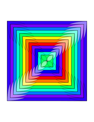 rainbow of squares with arrows on the corners