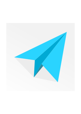 A paper airplane with gray shadow under the wings.