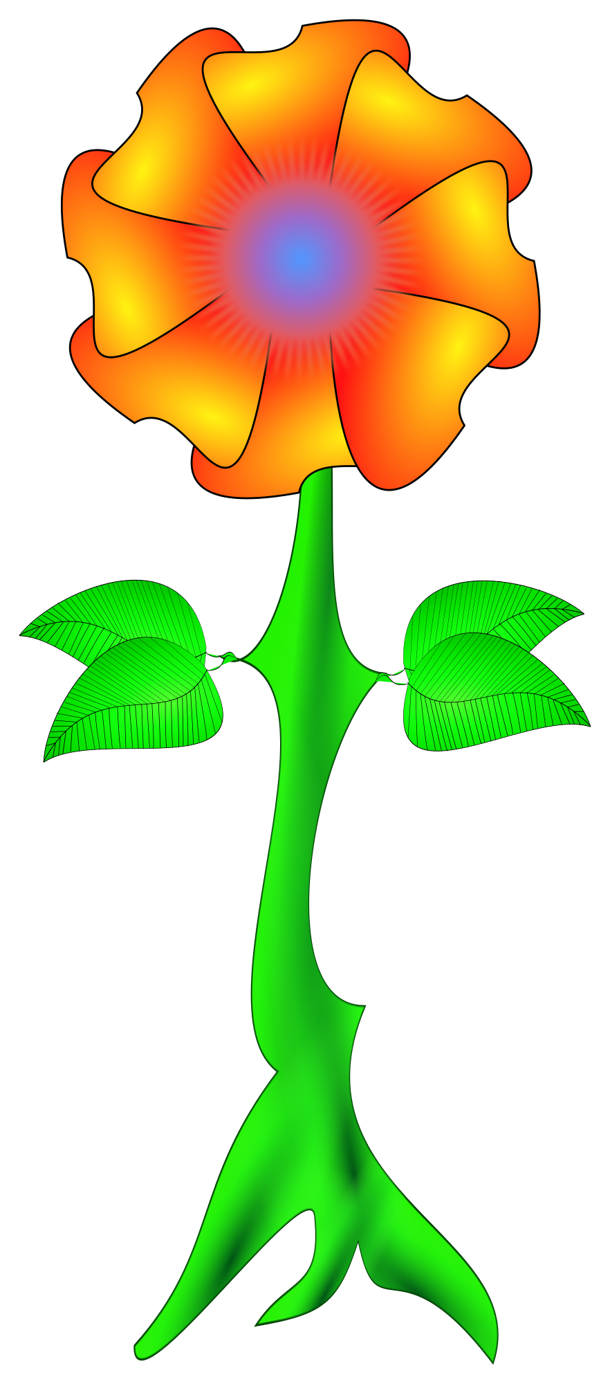 Flower made using cloning and paths to create the petals and some paths and gradients for the stem. Leaves added on the fly from another project.