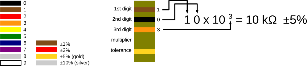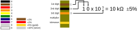 Resistor coloring including example. Font used: Liberation Sans.
